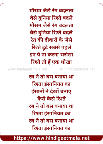Lyrics of Kaise Kaise Rishte (Sad) - मौसम जैसे रंग बदलता