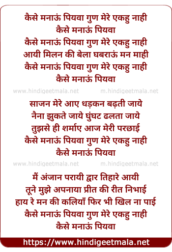 Lyrics of Kaise Manaayun Piyava Gun Mere Ekahu Naahin - कैसे मनाऊं पियवा गुण मेरे एकहु नाही