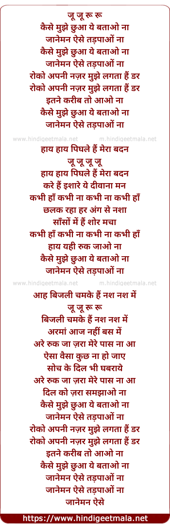 Lyrics of Kaise Mujhe Chhua - कैसे मुझे छुआ