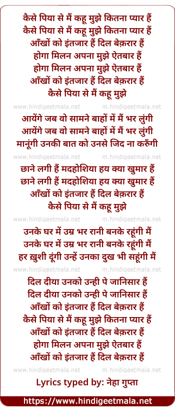 lyrics typed by: neha gupta