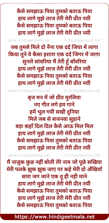 Lyrics of Kaise Samjhaoo Piya Tumko Bataou Piya - कैसे समझाऊ पिया तुमको बताऊँ पिया