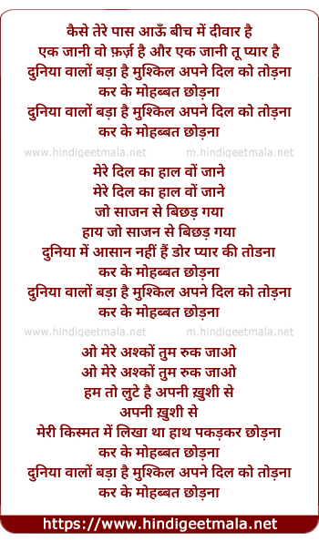 duniya walo bada hai mushkil apne dil ko todna