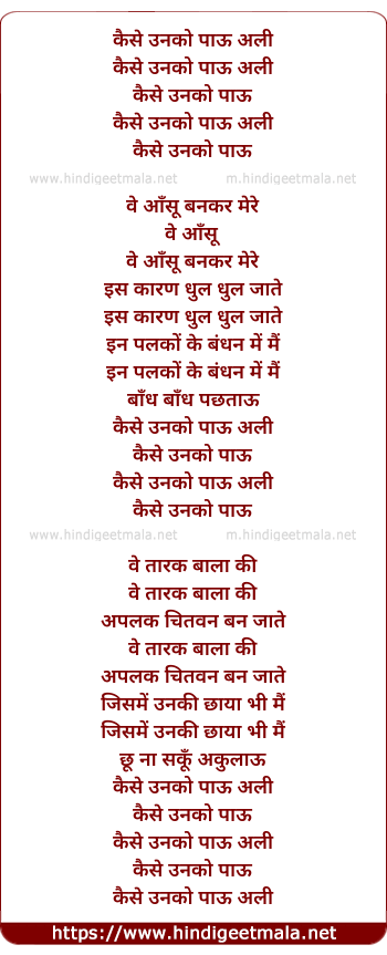 Lyrics of Kaise Unko Paau Aali - कैसे उनको पाऊ अली