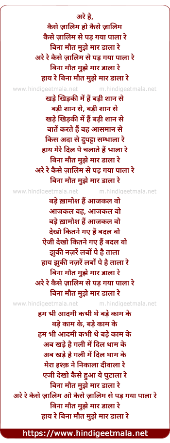 Lyrics of Kaise Zalim Se Pad Gaya Pala Re - कैसे ज़ालिम से पड़ गया पाला रे