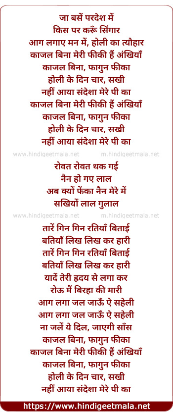 Poetic Translation - Lyrics of Kajal Bina Meri Phiki - काजल बिना मेरी फीकी