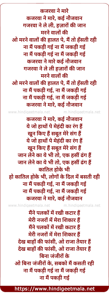 Lyrics of Kajarwa Ne Mare Kayi Naujawan - कजरवा ने मारे कई नौजवान