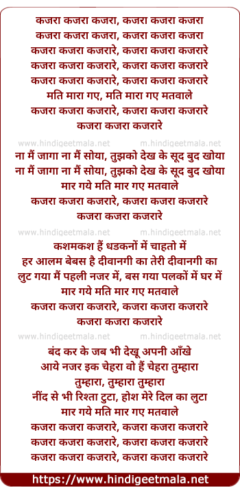 Lyrics of Kajra Kajra Kajraare (Remix) - कजरा कजरा कजरा, कजरा कजरा कजरा