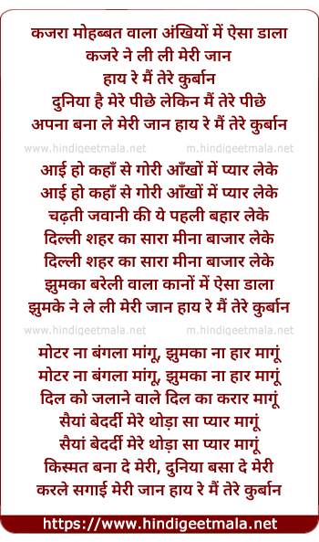Lyrics of Kajra Mohabbat Wala, Ankhiyon Me Aisa Dala - कजरा मोहब्बत वाला अंखियों में ऐसा डाला
