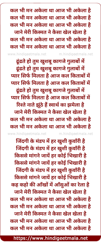 Lyrics of Kal Bhi Man - कल भी मन अकेला था आज भी अकेला है
