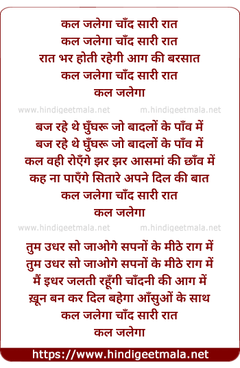 Lyrics of Kal Jalega Chand Sari Raat - कल जलेगा चाँद सारी रात