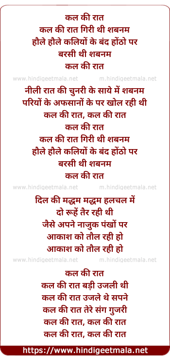 Lyrics of Kal Ki Raat Giri Thi Shabnam - कल की रात