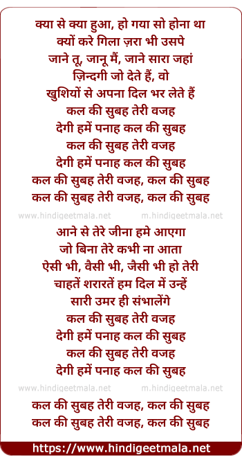 Lyrics of Kal Ki Subah - क्या से क्या हुआ, हो गया सो होना था