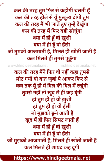 Lyrics of Kal Ki Tarah Tum Phir Se - कल की तरह तुम फिर से