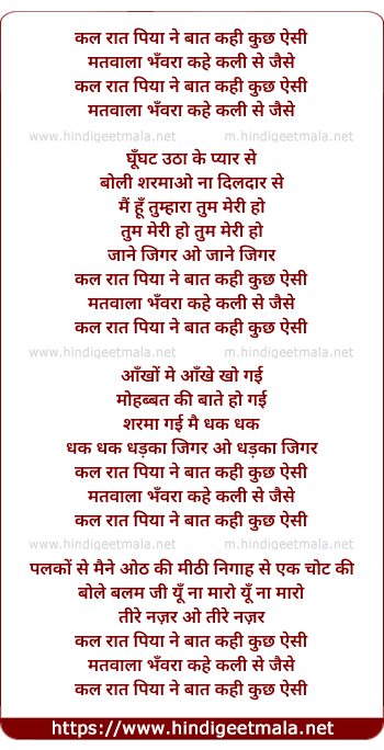 Lyrics of Kal Raat Piya Ne Baat Kahi Kuch Aisi - कल रात पिया ने बात कही कुछ ऐसी
