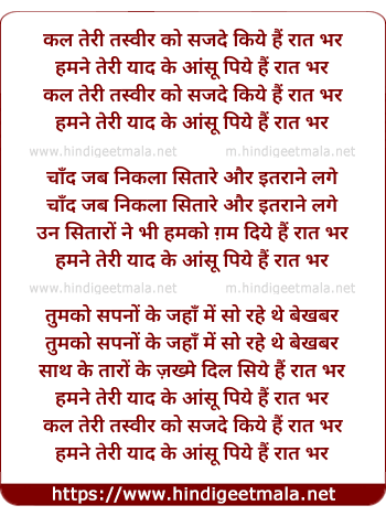 Lyrics of Kal Teri Tasveer Ko - कल तेरी तस्वीर को सजदे किये हैं रात भर