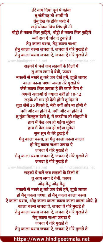 tenu kala chashma jachda ae