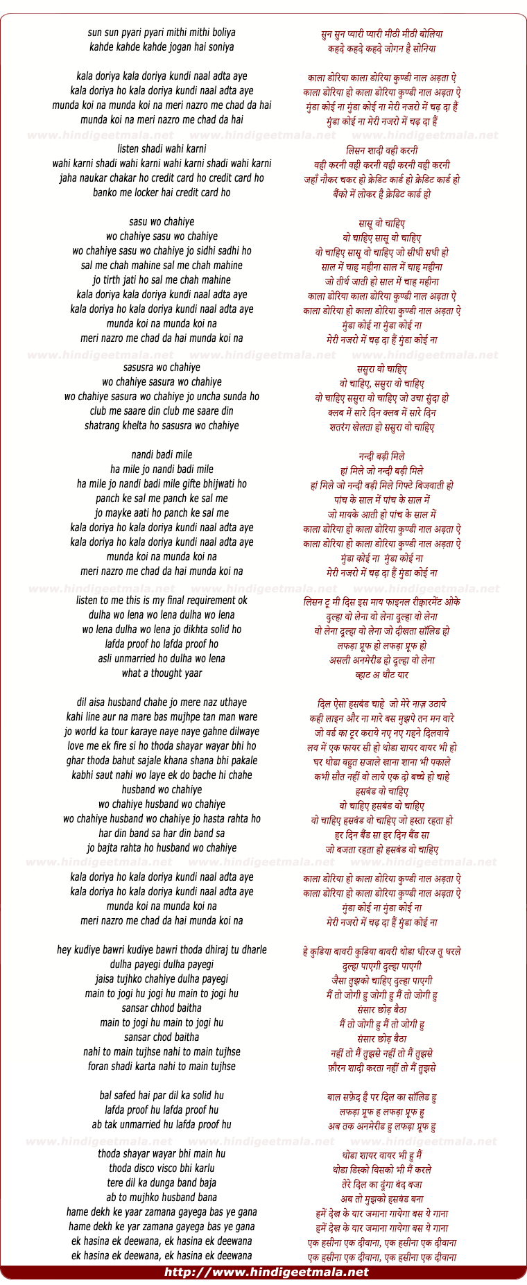 Lyrics of Kala Doriya Kala Doriya - काला डोरिया काला डोरिया