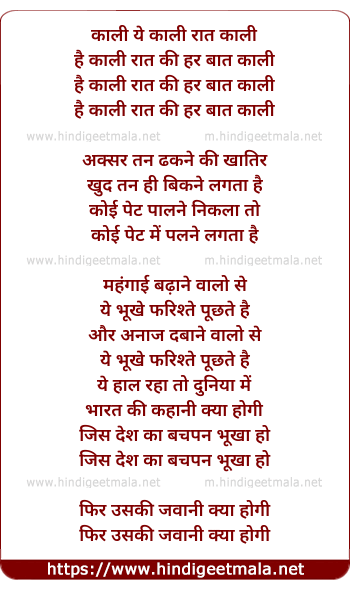 Lyrics of Kali Ye Kali Raat - काली ये काली रात