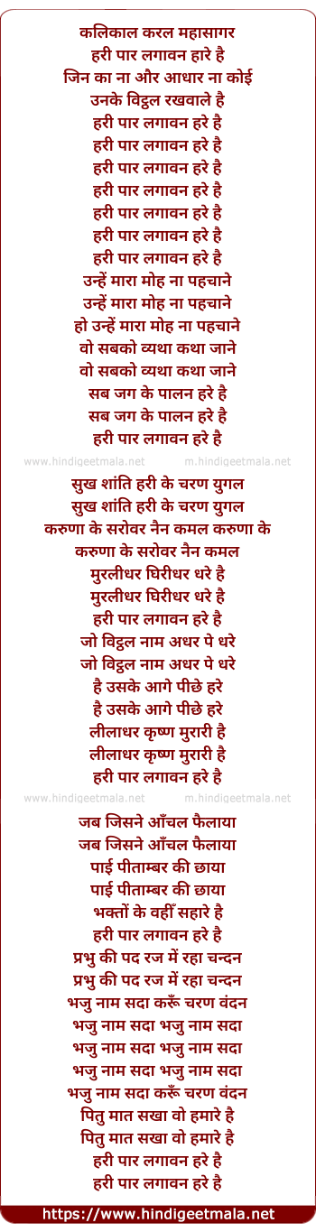 Lyrics of Kalikaal Karal Mahasagar Hari Paar Lagava - कलिकाल करल महासागर