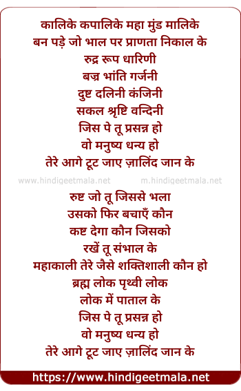 Lyrics of Kalike Kapalike - कालिके कपालिके