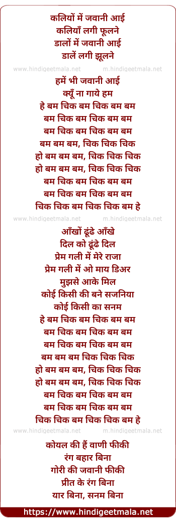 Lyrics of Kaliyo Me Jawani Aayi Kaliya Lagi Phulne - कलियों में जवानी आई कलियाँ लगी फूलने