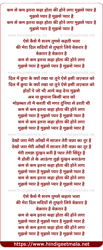 Lyrics of Kam Se Kam Itna Kaha Hota Ki - कम से कम इतना कहाँ होता की