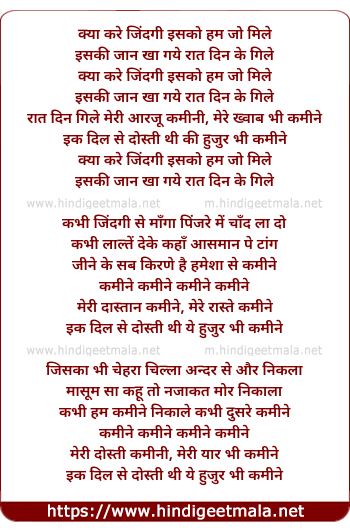 Lyrics of Kya Kare Jindagi Isko Hum Jo Mile - क्या करे जिंदगी इसको हम जो मिले