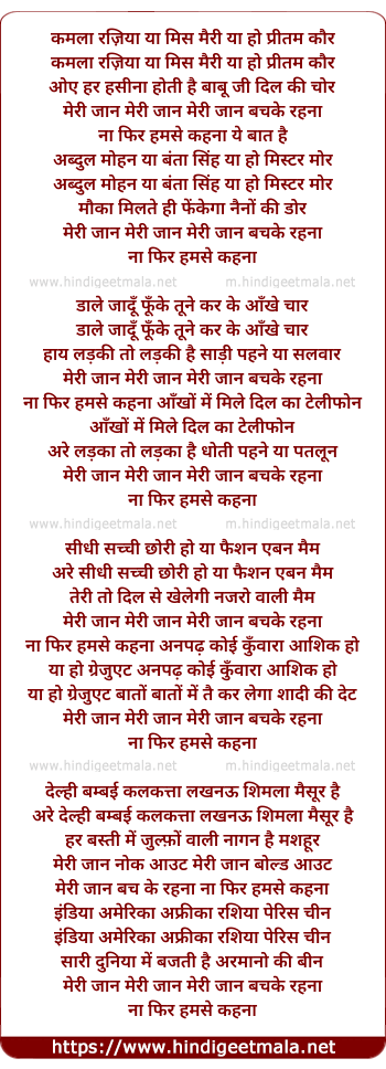 Lyrics of Kamla Raziya Ya Miss Merry Ya Ho Pritam Kaur - कमला रज़िया या मिस मैरी या हो प्रीतम कौर