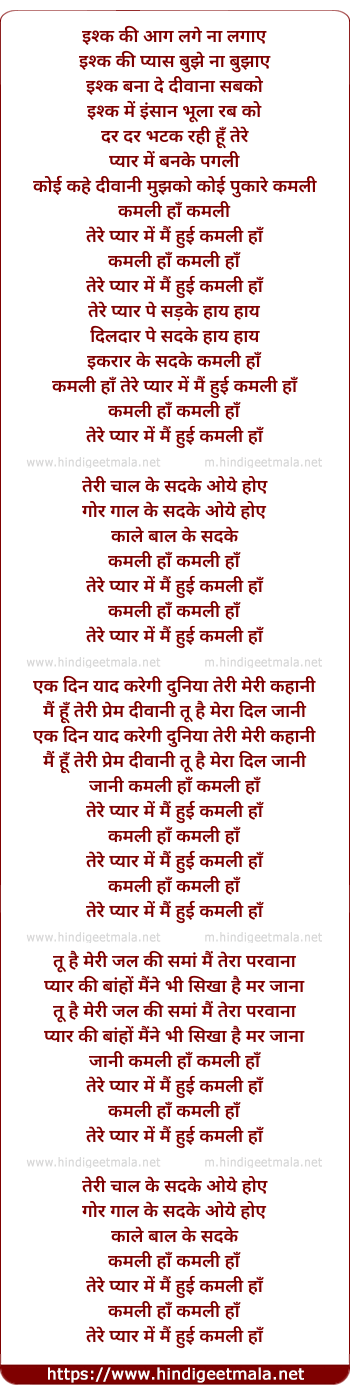 Lyrics of Kamli Ha Tere Pyar Me Kamli Ha - कमली हाँ तेरे प्यार में कमली हाँ