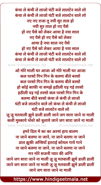 Lyrics of Kancha Le Kanchi Lai Lajo - कंचा ले कंची ले लाजो