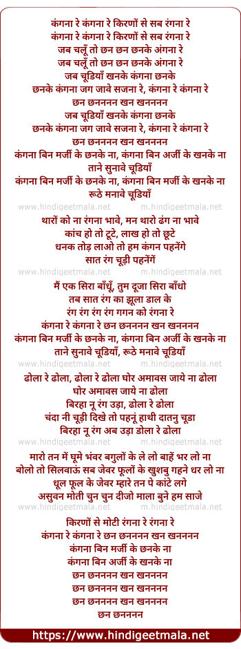 Lyrics of Kangana Re Kangana Re - कंगना रे कंगना रे