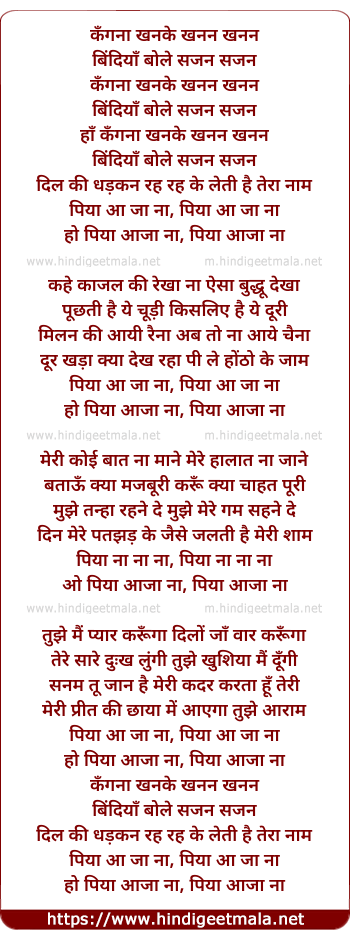 Lyrics of Kangna Khanke Khanan Khanan - कँगना खनके खनन खनन