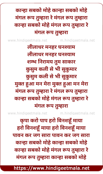 Lyrics of Kanha Sabko Mohe Mangal Roop Tumhara - कान्हा सबको मोहे मंगल रूप तुम्हारा