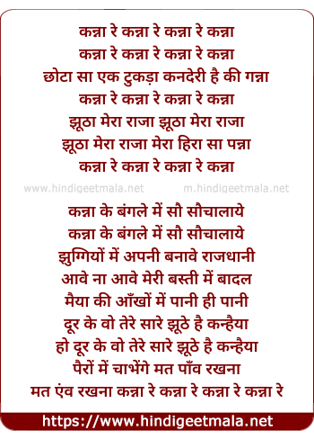 Lyrics of Kannaa Re Kannaa - कन्ना रे कन्ना