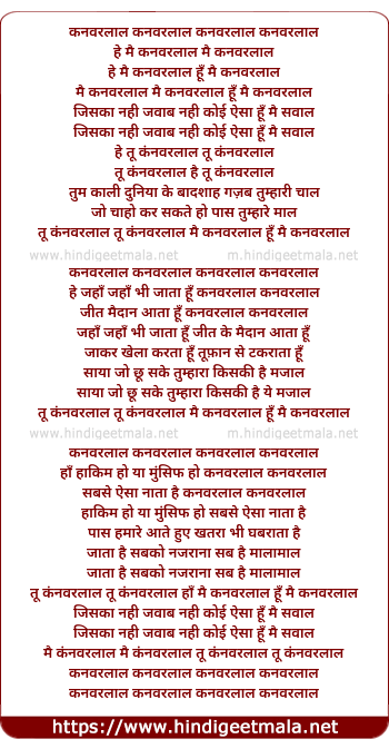 Lyrics of Kanwarlal Kanwarlal - कनवरलाल कनवरलाल