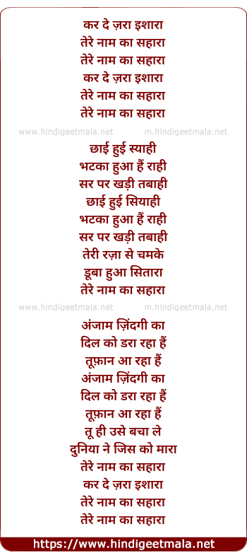 Lyrics of Kar De Jara Ishara, Tere Nam Kaa Sahara - कर दे ज़रा इशारा तेरे नाम का सहारा