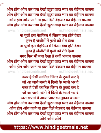 Lyrics of Oye Hoy Oye Kar Gaya Dekho Jhutha Wada Pyar Ka - ओय होय ओय कर गया देखो झूठा वादा प्यार का