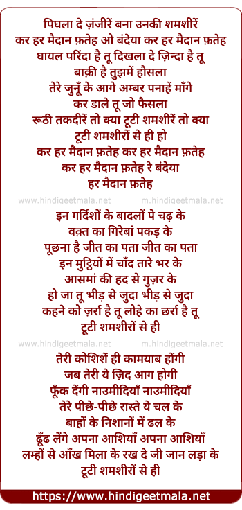 Poetic Translation - Lyrics of Kar Har Maidan Fateh - कर हर मैदान फतेह