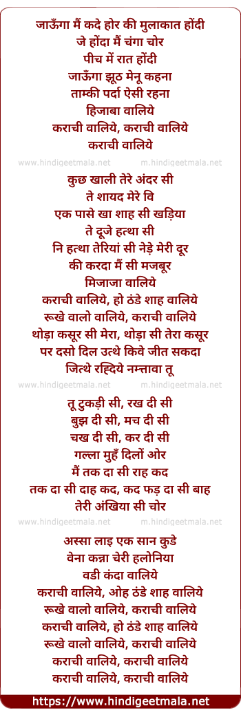 Lyrics of Karachi Valie - जाऊँगा मैं कदे होर की मुलाकात होंदी