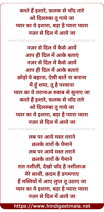 Lyrics of Karate Hain Ishaare Falak Se Chaand Taare - करते हैं इशारे, फ़लक से चाँद तारे