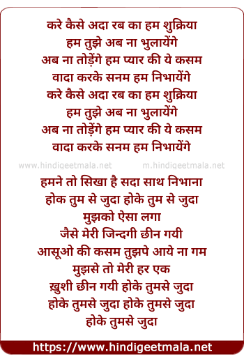 Lyrics of Kare Kaisa Ada Rab Ka - करे कैसे अदा रब का