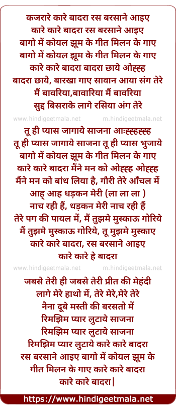Lyrics of Kare Kajrare Badra