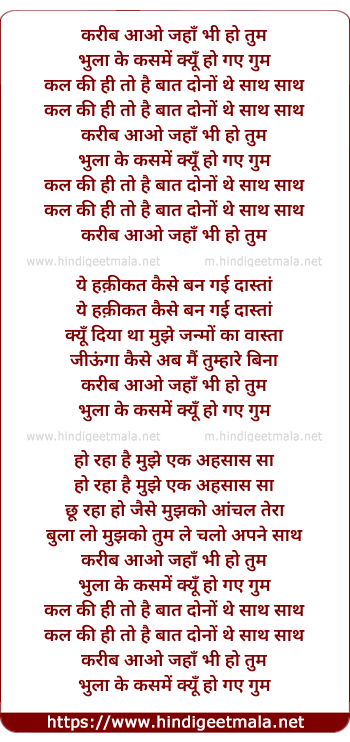Lyrics of Karib Aao - करीब आओ जहाँ भी हो तुम