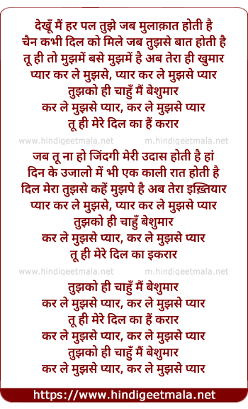 Lyrics of Karle Mujhse Pyaar - कर ले मुझसे प्यार