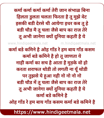 Lyrics of Karma Bade Kamine Hai - कर्मा बड़े कमीने है