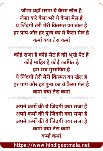 Lyrics of Karmah - जीना यहाँ मरना ये कैसा खेल है