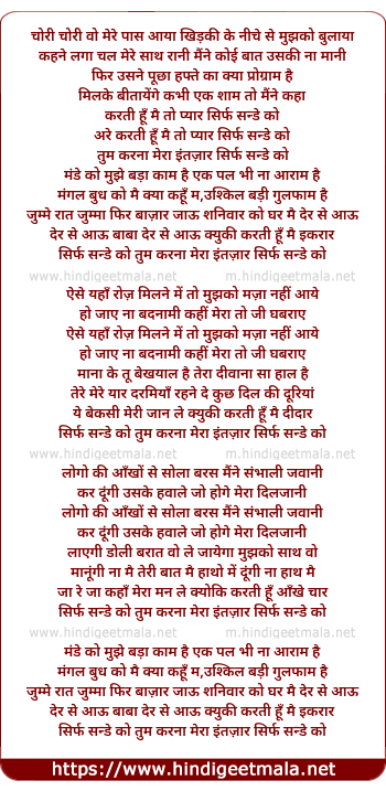 chori chori wo mere pas aaya khidki ke niche se mujhko bulaya