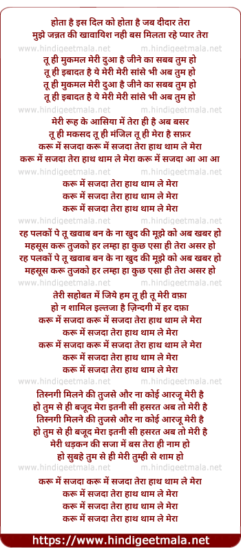 Lyrics of Karu Main Sajda Tera - करू मैं सजदा तेरा