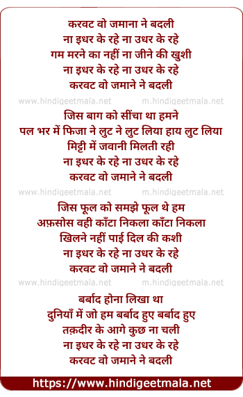 Lyrics of Karwat Wo Zamane Ne Badli - करवट वो जमाने ने बदली