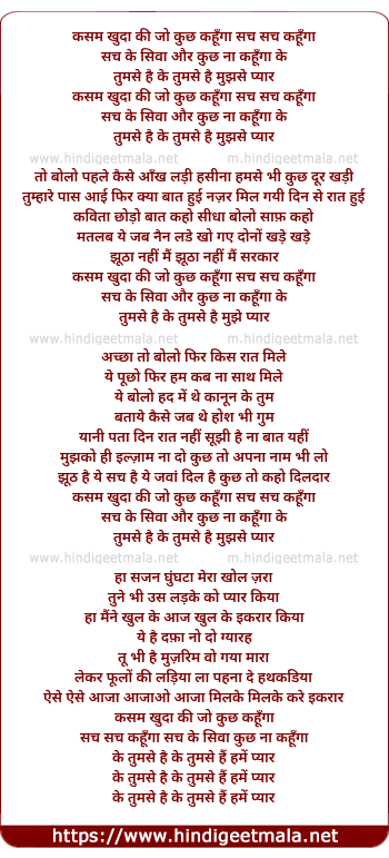 Lyrics of Kasam Khuda Ki Jo Kuch Kahunga, Sach Sach Kahunga - कसम खुदा की जो कुछ कहूँगा सच सच कहूँगा